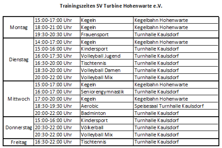 Genaue Trainingsuhrzeiten entnehmen Sie bitte unter der jeweiligen Sektion.