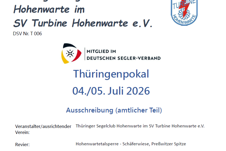 Ausschreibung Thüringenpokal am 04./05. Juli 2026 Download finden Sie unter der Sektion als PDF